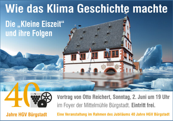 Am 02. Juni fand in der Mittelmühle der überaus gut besuchte Vortrag "Wie das Klima Geschichte machte. Die 'Kleine Eiszeit' und ihre Folgen" von Otto Reichert statt.